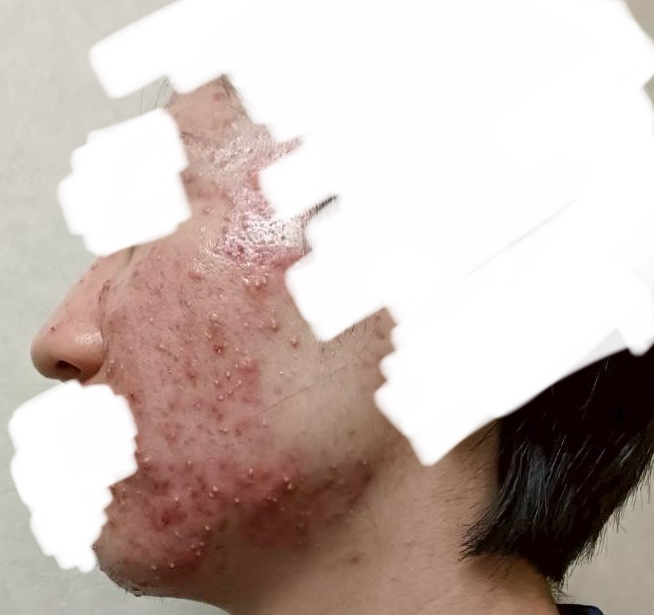 顔全体に広がる赤いニキビ。 膿んで痛くて、いつも顔が痒い…。